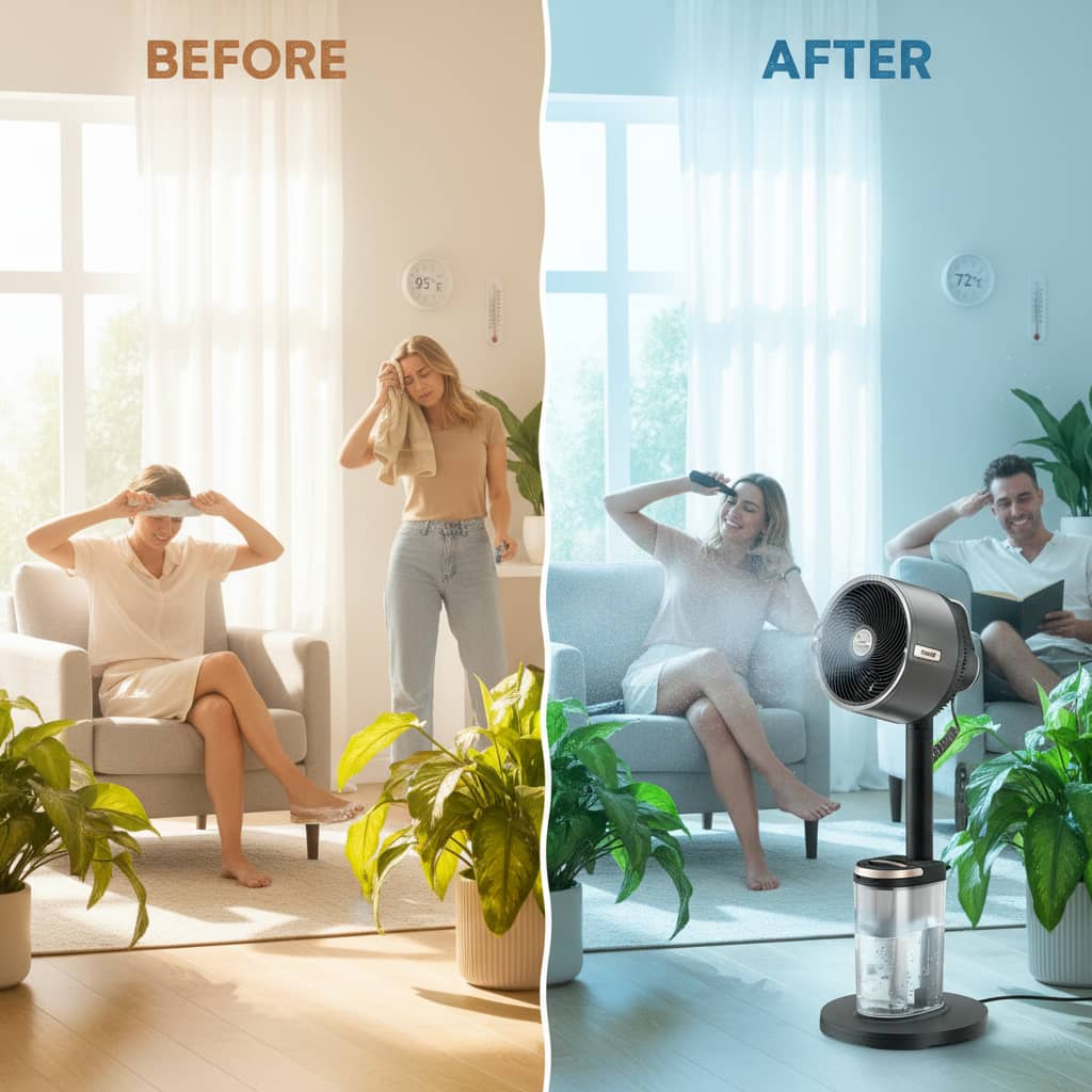 *Stay cool from up to 70 feet away: Whether indoors or outdoors, FlexBreeze™ Pro Mist delivers incredibly powerful airflow, keeping you cool even from a distance.